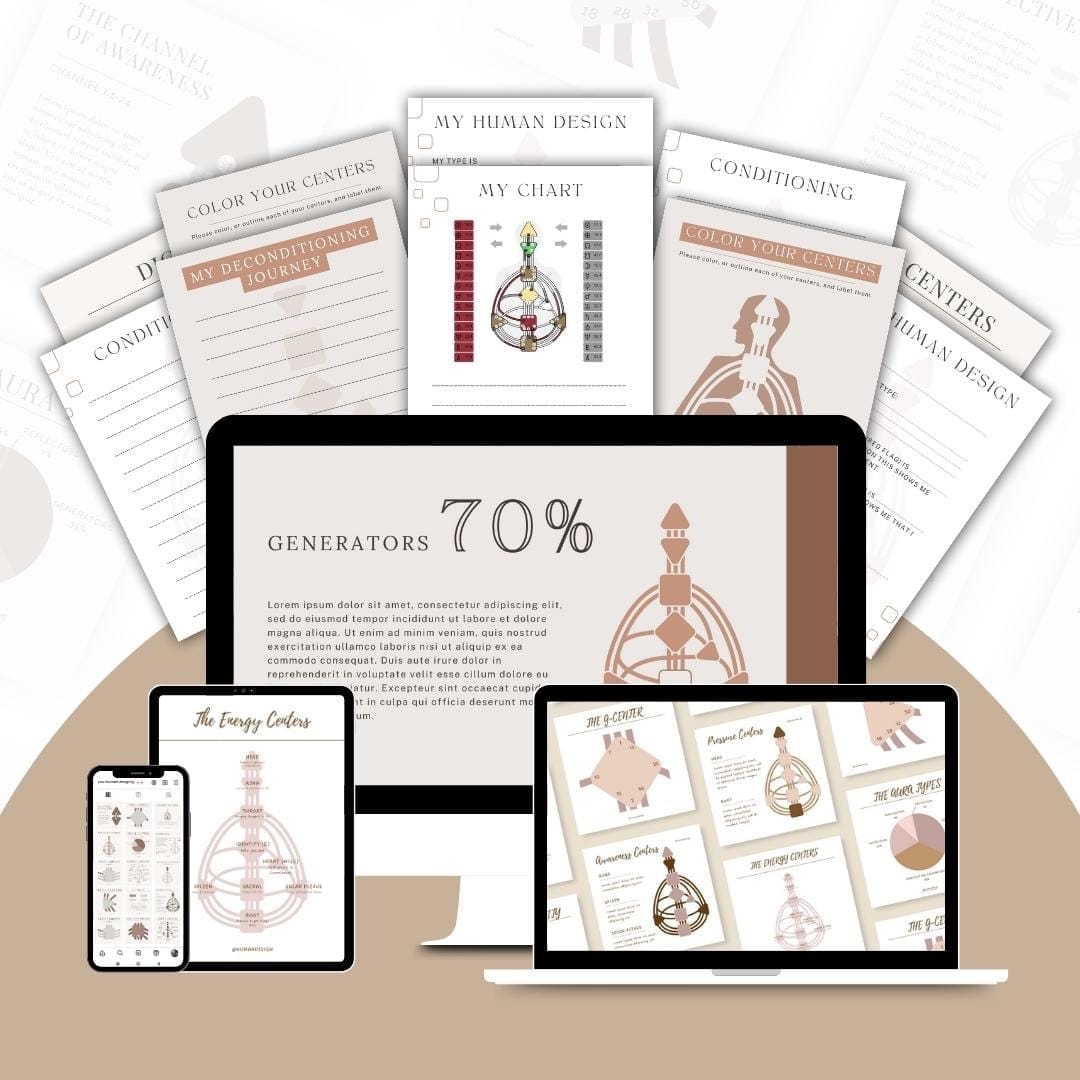 Through the treasure-trove of resources created by me (a Human Design Educator) and a professional Graphic Designer, you will be able to confidently share Human Design with your clients and audience comfortably.