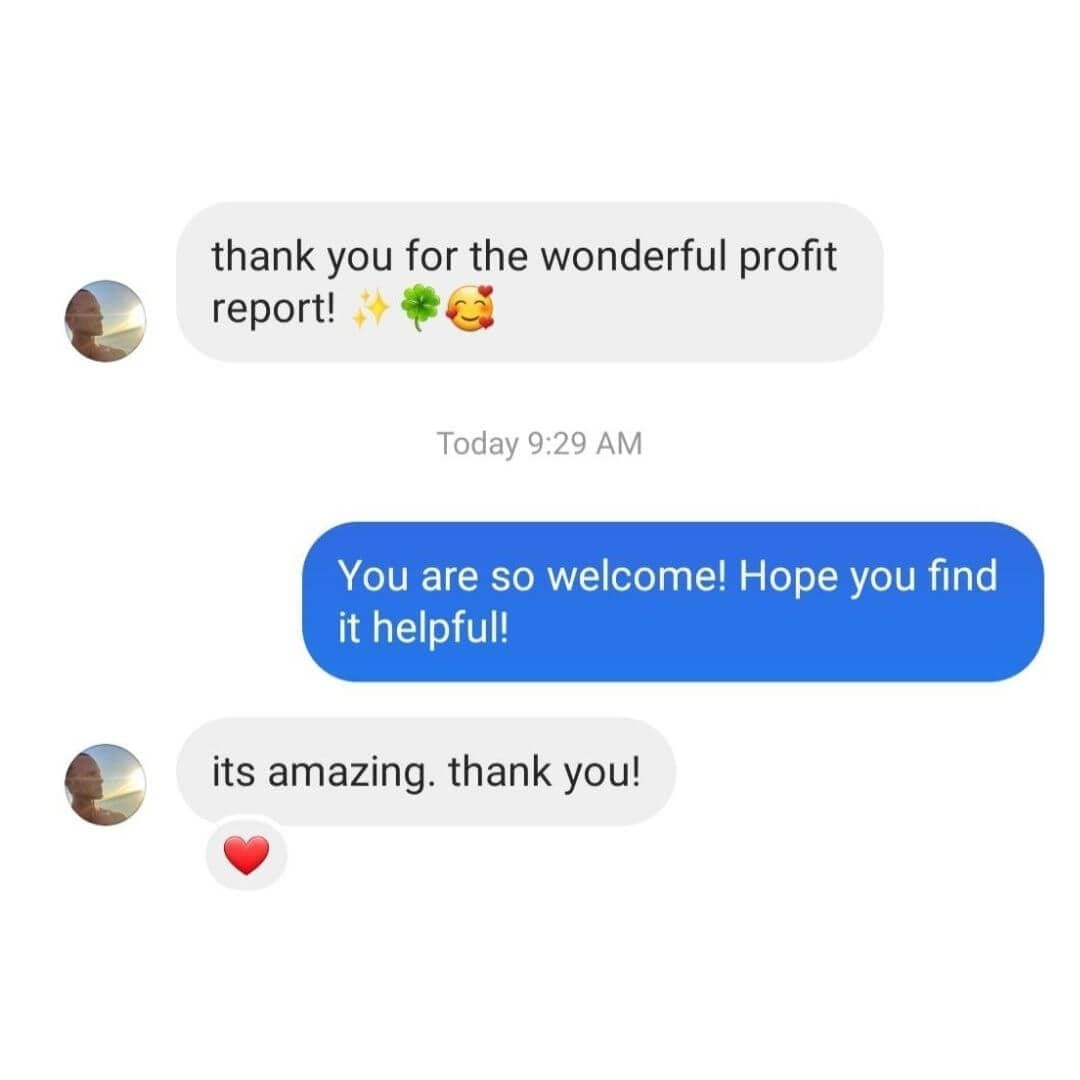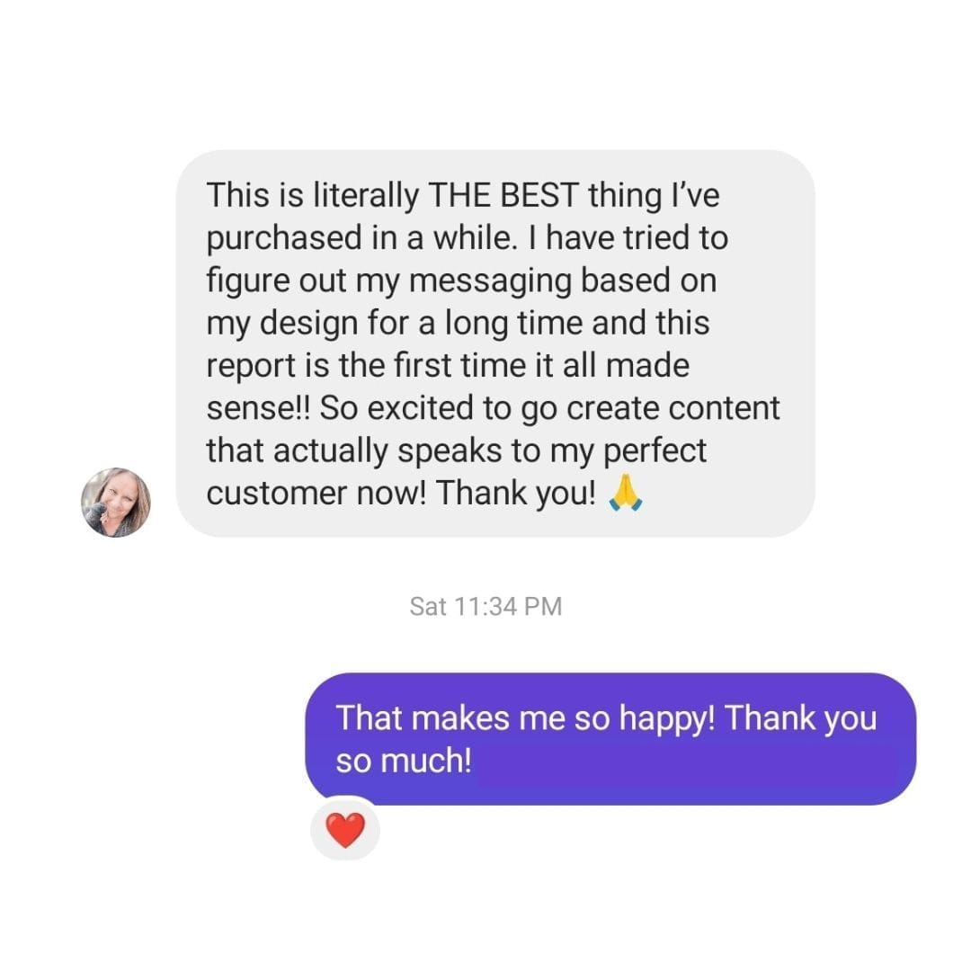 I already had a product I felt so great about selling and knew it would serve people, but I was struggling to reach the right people. I had already tried the traditional path of "niching down" and finding my ideal customer, but still wasn't feeling aligned in how I was sharing my product. The Profit Report changed that for me! It was just what I needed and I feel so confident in my message now! The details and info in the report were so clear and easy to understand, but so in-depth that I was blown away by the value. I am so grateful to have found this when I did and cannot recommend it enough to anyone struggling to sell their products.