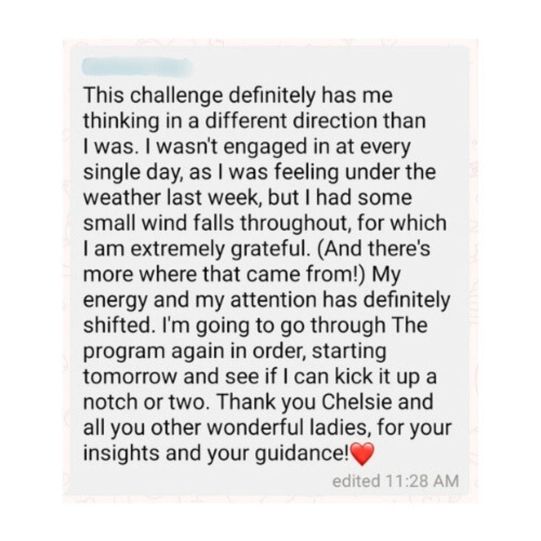 I was a stay at home mom living in a place I did not like and wishing my life away. I watched a training Chelsie did. What she said made sense to me and I joined her group. From there, I learned everything I could from the free trainings in her groups, to courses she offered, to more personal group coaching. It has been so valuable. I became a more confident, relaxed person, who took charge of her life and moved her family to her dream location! She’s taught me about social media marketing, business in general, sales, personal branding, and along the way, I have learned so much about myself. Chelsie is a no-nonsense, straight to the point person who does not waste your time with hour (or more) long trainings. She doesn’t accept excuses, and forces you to look inside yourself. Her courses are quick and easy to follow, and they WORK! Thank you Chelsie!